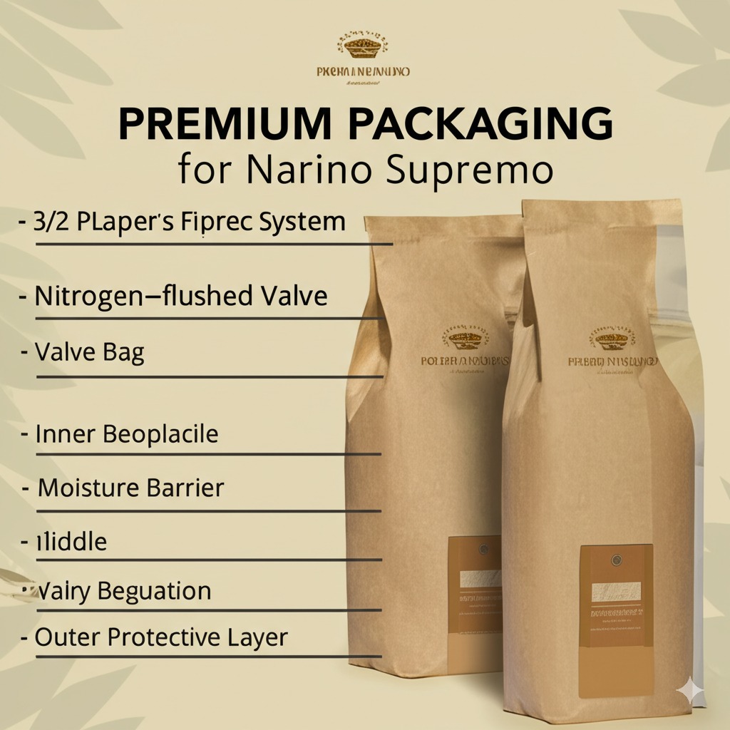 การรวมกันของคุณภาพนี้ทำให้ Narino supremo ไม่เพียง แต่กาแฟ แต่เป็นผลิตภัณฑ์หรูหราที่ต้องใช้บรรจุภัณฑ์ที่สื่อสารสถานะพรีเมี่ยม